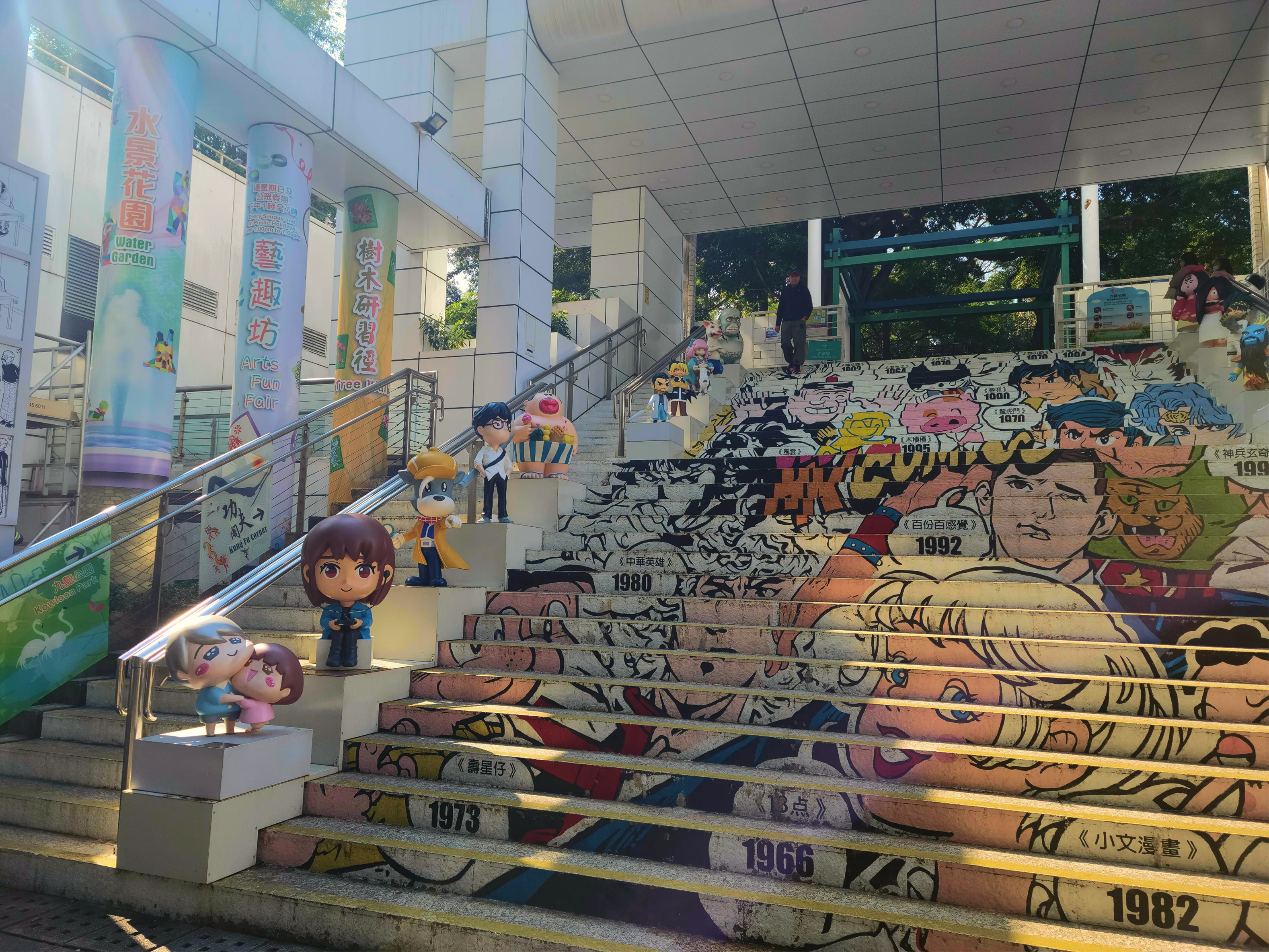 The park also features Hong Kong's iconic cartoon and comic characters! Adorning the steps into the park from Nathan Road, you can checkout your favorite characters and take an insta-worthy shot!