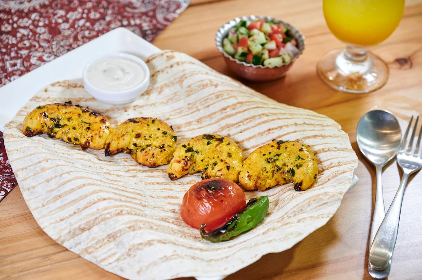 Saffron 帶領食客走進神秘的中東世界,主打充滿香料氣息的波斯及地中海料理。餐廳環境溫馨且充滿異國情調,裝飾著華麗的波斯地毯與燈飾。其菜單的核心是各式各樣的「卡巴 (Kebabs)」和以番紅花入味的特色香米飯。每一道菜都選用高品質的香料,營造出豐富且層次鮮明的味覺體驗。